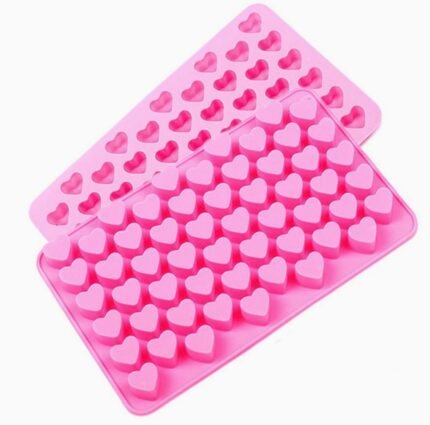 Mini Heart 55-Cavity Molds, Heart Shape Ice Cube Candy Chocolate Mold, Valentine Candy Molds, Pack of 2