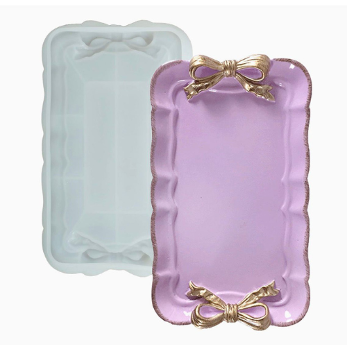 Tray Molds, Bow Silicone Tray Resin Mold, Container Storage Silicone Molds for Epoxy Resin, Display Rectangle Jewelry Plate Candle Holder Soap Dish Serving Board Mold Casting Craft Kit