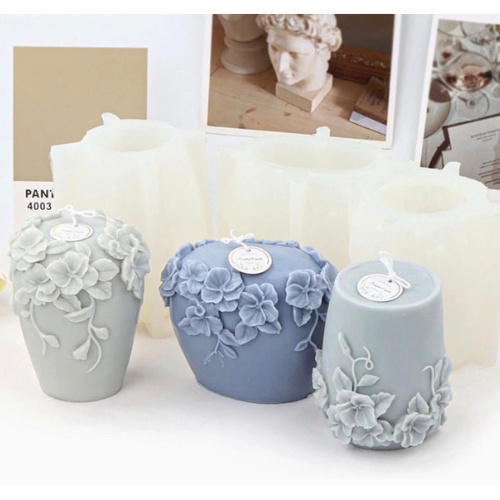 Rattan Flowers Candle Mold I 3D Cylinder Pillar Silicone Epoxy Mould I for DIY Handmade Ornament, Cake Décor, Aromatherapy, Soap, Resin Art Craft Making, Home Party Decoration (C)