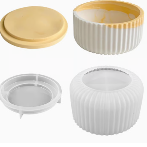 Storage Box with Lids Candle Jar Molds Set, Creative Silicone Candle Vessels Pot Molds, Concrete Round Stripe with Cover Bottle Making Moulds for Storage Candle Holder (C)