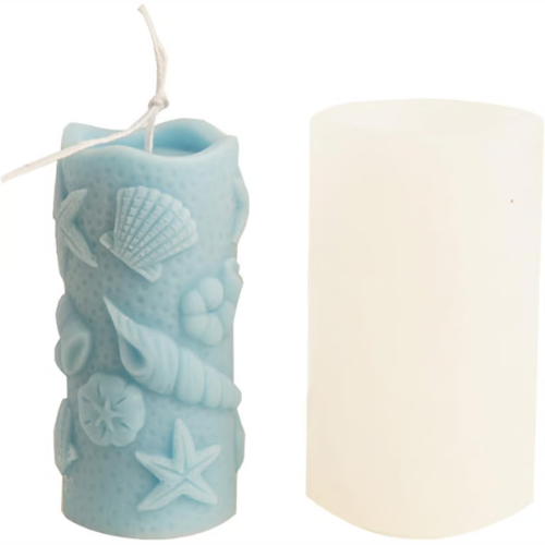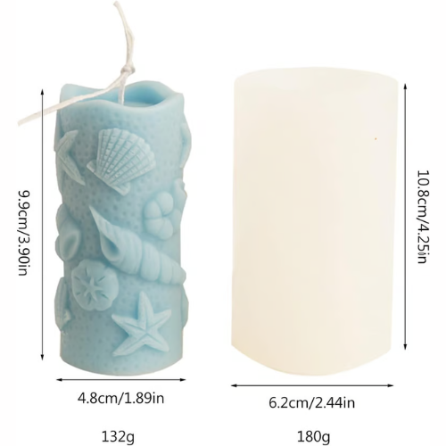 Seashell Candle Mold I 3D Marine Shell/Conch/Starfish/Scallop Embossed Cylinder Silicone Epoxy Mould I for DIY Handmade Ornament Chocolate, Cake Décor, Soap, Resin Art Craft Making