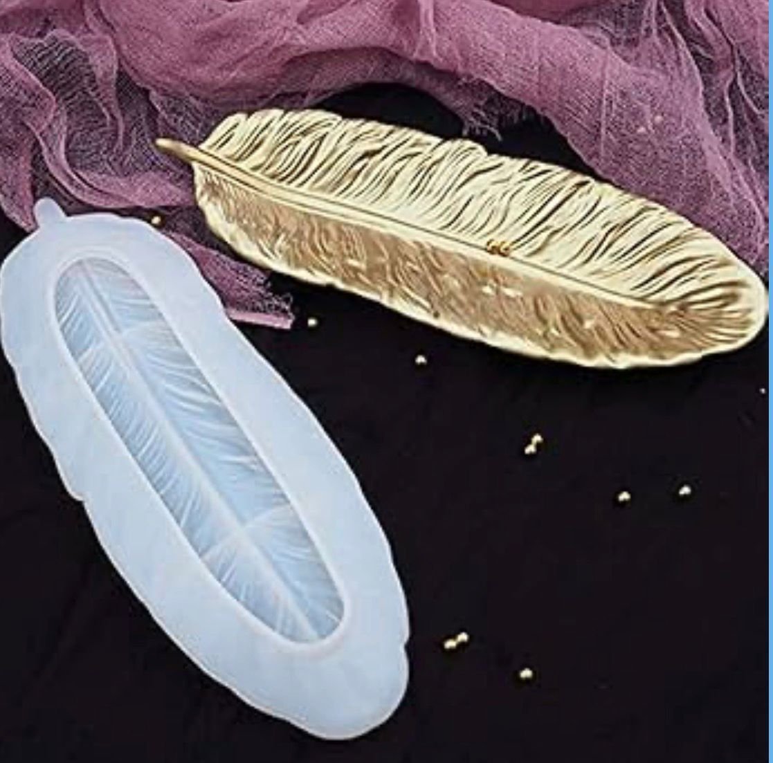 HolderLarge Feather Shaped Resin Tray Mold Feather Shape Silicone Mold for Epoxy Resin Casting DIY Silicone