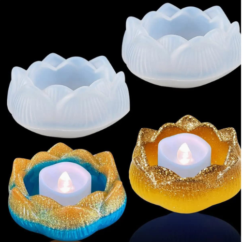 Flower Lotus New Tea Light Candle Holder Mould Silicone, 1 Pc Tealight Candles Holders Silicone Molds for Resin, Lotus Flower Candlestick Epoxy Casting Molds for DIY Crafts Jewelry Box