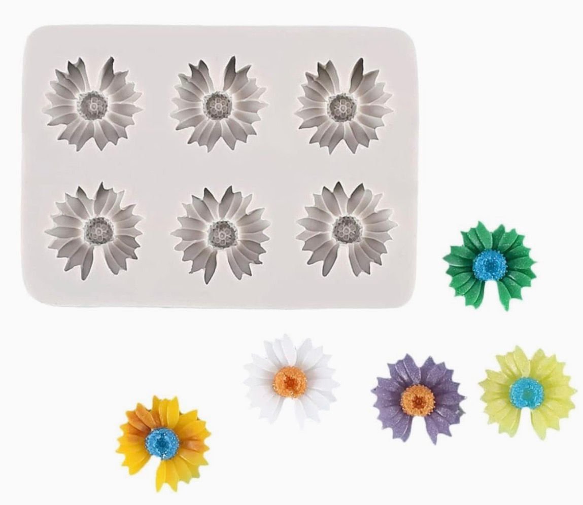 6 Cavity Daisy Sunflower Flower Silicone Fondant Mould for Chocolate Candy Cake Decoration Cupcake Topper Jelly Dessert Ice Cube Sugarcraft Clay Candle Wax Soap Mini Resin Craft Jewelry Mold
