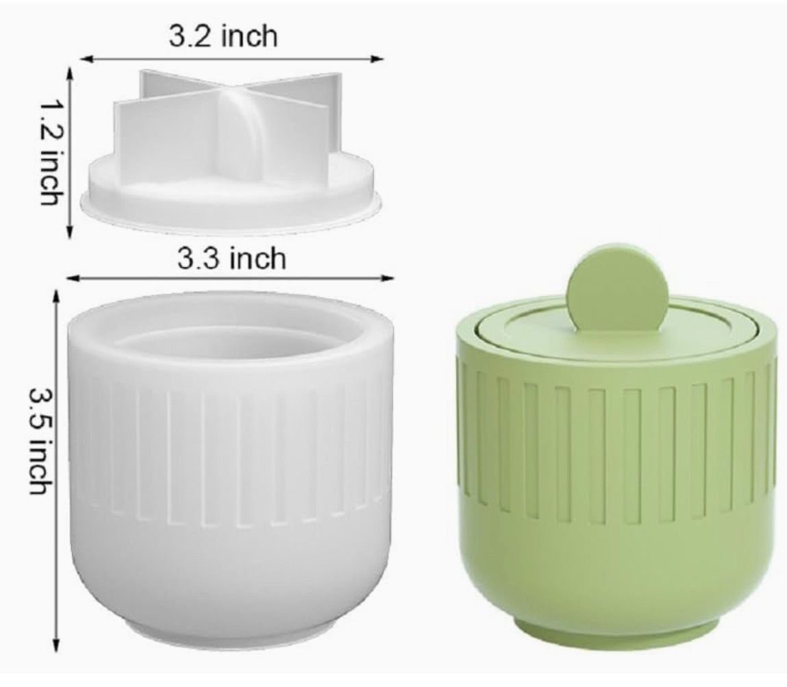 Round Striped Jar with Lid Silicone Mould, Handmade Elliptical Storage Bowl Resin Candle Mould for DIY Plaster Cement Eco Casting