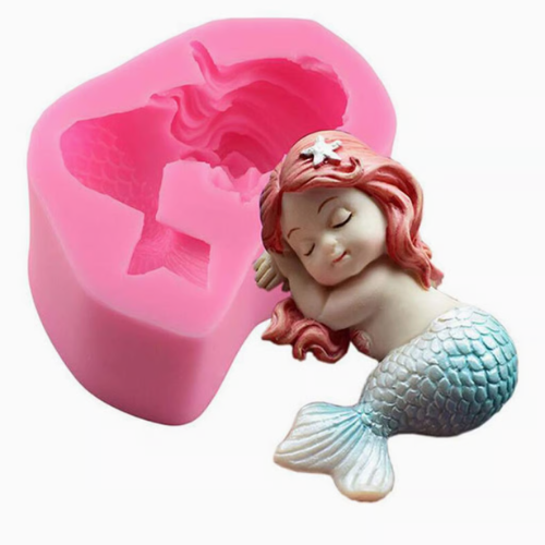 Mermaid Fondant Mold Cute 3D Sleeping Baby Girl Mould Cake Topper DIY Decoration Baking Tool for Sugarcraft, Chocolate, Candle, Soap Making and Crafting