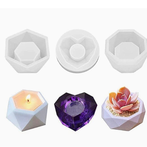 Pack of 3 Planter Silicone Craft Mold | Heart, Hexagon and Octagon Shape | Tealight Candle Holder Mould | Candle Mould Pack of 3 Different Shape Mould.