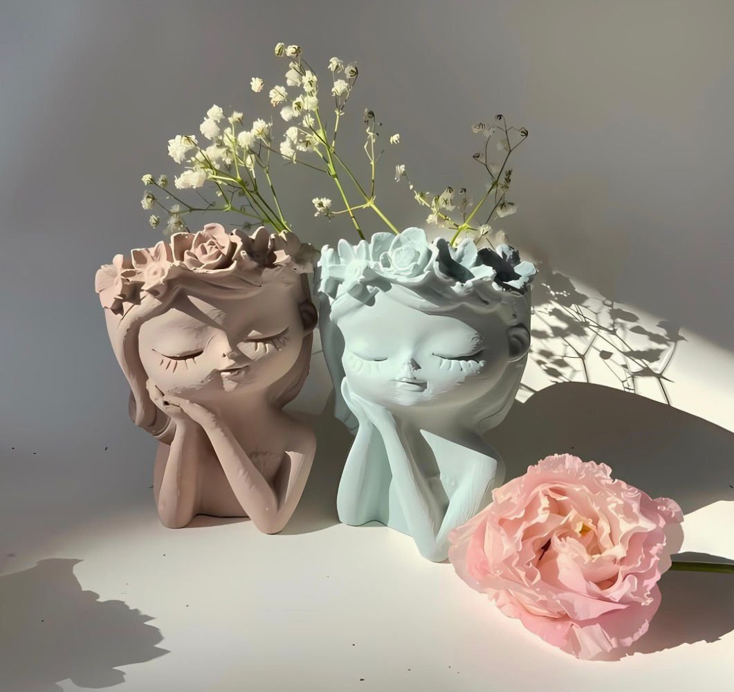 Queen Vase_Cylindrical Shaped_Decorative Concrete Vase_Waterproof_ Set of 2_Multipurpose Usage (Mantelpiece, Bookshelf, Coffee Table) Big_Solid Sky Blue_Waterproof