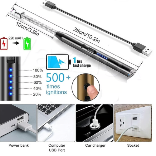 Experience the future of lighting with our Rechargeable Electric Arc Lighter. Featuring a flexible neck, it’s designed for effortless use whether you’re lighting candles, stoves, or more. Equipped with a USB charging cable, it ensures you never run out of power. The device’s intuitive indicator lights keep you informed of the battery status at all times. Available in sleek silver and compact enough to fit in your pocket, this lighter is as stylish as it is functional. Say goodbye to the hassle of disposable lighters and step into a new era of sustainable, efficient lighting.