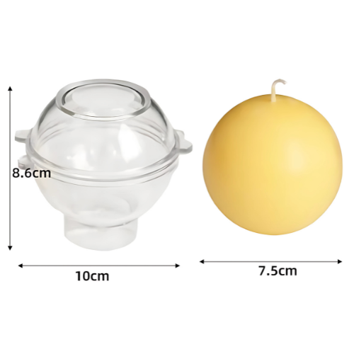 Elevate your candle-making game with this premium round candle mold crafted from durable, transparent plastic. Measuring 10 cm in diameter and 8.6 cm in height, this mold effortlessly produces perfectly spherical candles with a finished size of 7.5 cm wide. Its user-friendly design ensures a smooth release, making it an ideal choice for both novice and seasoned candle makers. Reusable and easy to clean, this mold is an essential tool for anyone looking to create professional-quality candles at home.