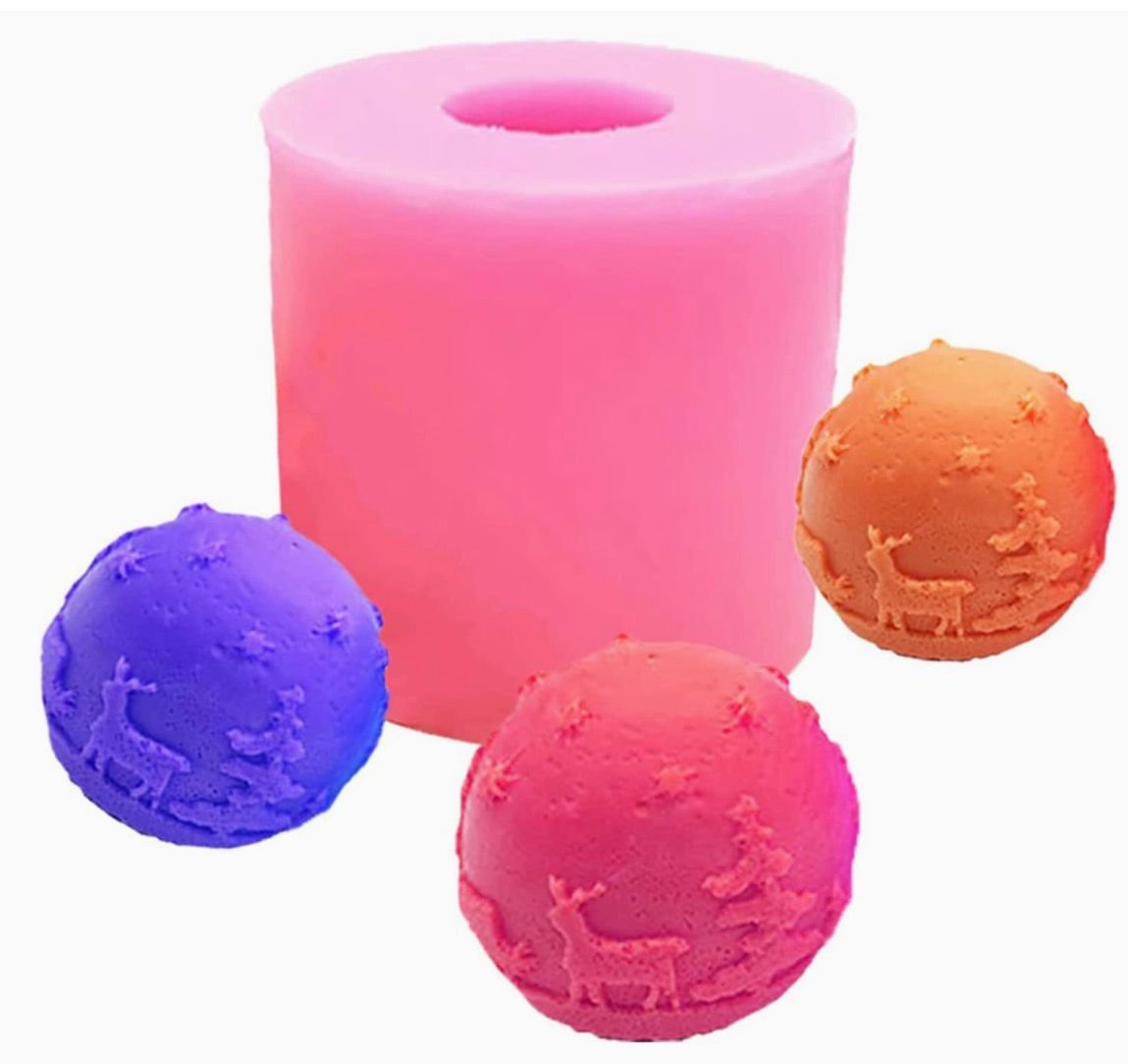 Round Christmas Tree & Elk Reindeer Pattern Candle Mold I Fondant Silicone Scented Wax Mould I Succulent Molds | Handmade Candles Making | for Mousse Dessert Soap Cake DIY Decorating