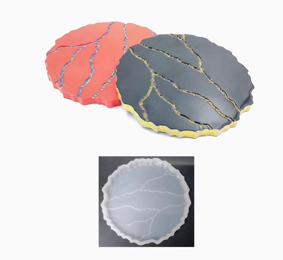 Pack of 10 Round Crack-Patterned Silicone Molds, Ideal for Epoxy Resin DIY, Coaster Casting, Candlestick Holders, and Table DecorationROU