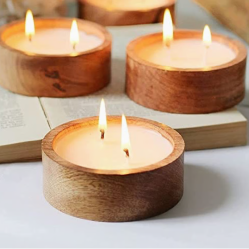 Round Wooden Candle Bowl