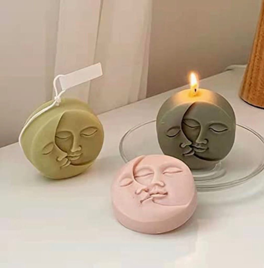 e Sun Moon Design Candle Molds for Candle Making – 3D Sun and Moon Face Soft Silicone Mold for Soap, Candle, Polymer Clay, Fondant