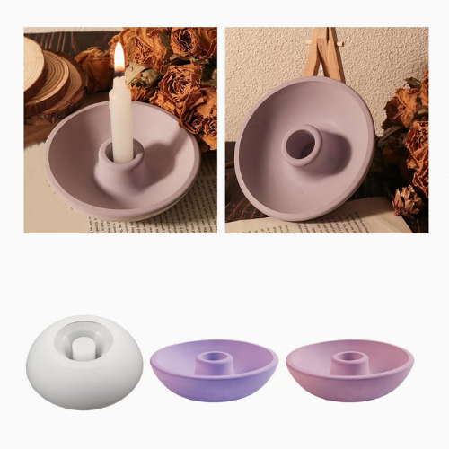 Silicone Mold Candle Holder Round Candle Holder Tray 3D Candle Silicone Mold Moulds Candle Holder Epoxy Resin Molds DIY Cement Taper Candle Holder Mold for Resin Plaster Cement Concrete