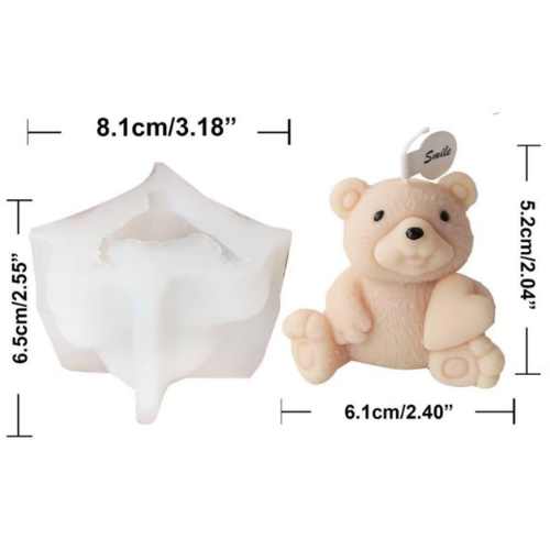 Teddy Bear Candle Mould I 3D Cute Sitting Bear Shape Silicone Scented Epoxy Mold I for DIY Handmade Ornament Cake Décor Aromatherapy Soap Resin Art Craft