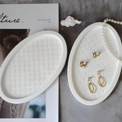 Concrete Fish Scale Trinket Tray | Jewellery/Makeup/Table Organizer l Home Decor l Candle Tray | Multipurpose (20×13×2cm) big and small size available