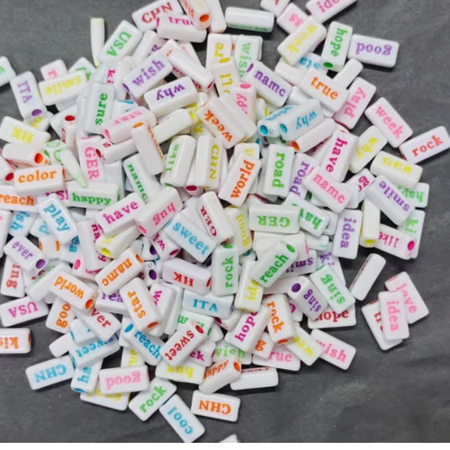 Present 100pcs Multicolour Words White Beads for DIY Bracelets Necklaces Children’s Educational Toys Handmade Gift